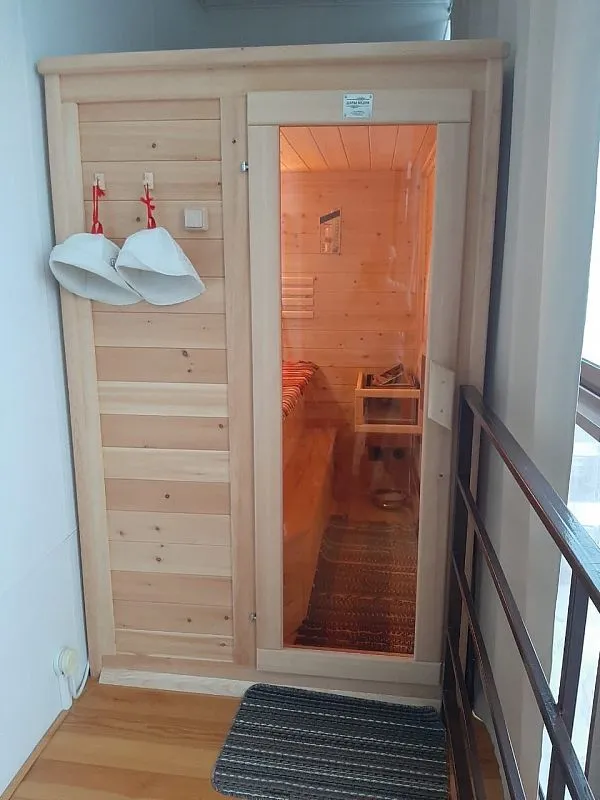 Вот так красиво вошла в мой интерьер инфракрасная сауна, изготовленная по моим размерам. Огромное спасибо за мою "баньку", мы очень ее любим, погреться здорово! И Вам желаем здоровья!