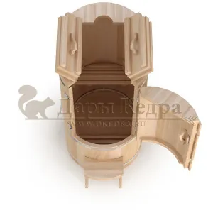 Овальная фитобочка из кедра - это мини парная, которую можно использовать не только в спа-салонах, но и дома. Овальная модель более просторна и удобна в использовании. Толщина стенок составляет 40-45 мм, что позволяет увеличить срок службы изделия. Верхний скос делает положение головы более комфортным и улучшает обзор. Она оборудована откидными створками, дверцей и отверстием для головы. Во время парения человек сидит внутри кедровой бочки, а голова находится снаружи. Благодаря этому исключается возможность перегрева. Подлокотники из кедра, встроенные ручки на створках и двери делают эксплуатацию более удобной.