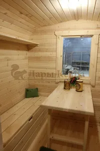 Домик подходит для дачного использования в теплое время года или обустройства загородных баз отдыха. Его можно разграничить на две зоны и использовать как кухню и спальное помещение. Домик оборудован увеличенным окном, четырьмя лежаками из кедра, вешалкой и полкой из кедра. Для удобства пользования кемпинг дом можно укомплектовать верандой с лавочками или козырьком.